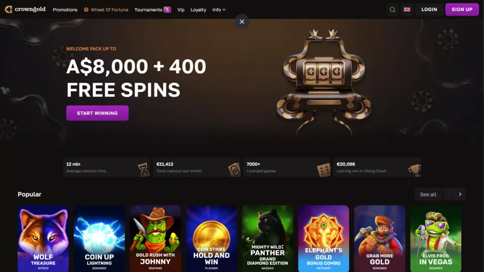CrownGold is an online gambling site that has been accepting players from Australia and many other countries since 2023. This is a licensed online casino with a Kahnawake gambling license, and the operator follows the highest industry standards regarding the security of its players. Our review of CrownGold casino for Australian players in 2025 showed that here Aussie visitors can get big bonuses of different types. In addition, the game collection at CrownGold has more than 9,000 titles from top-tier software developers.