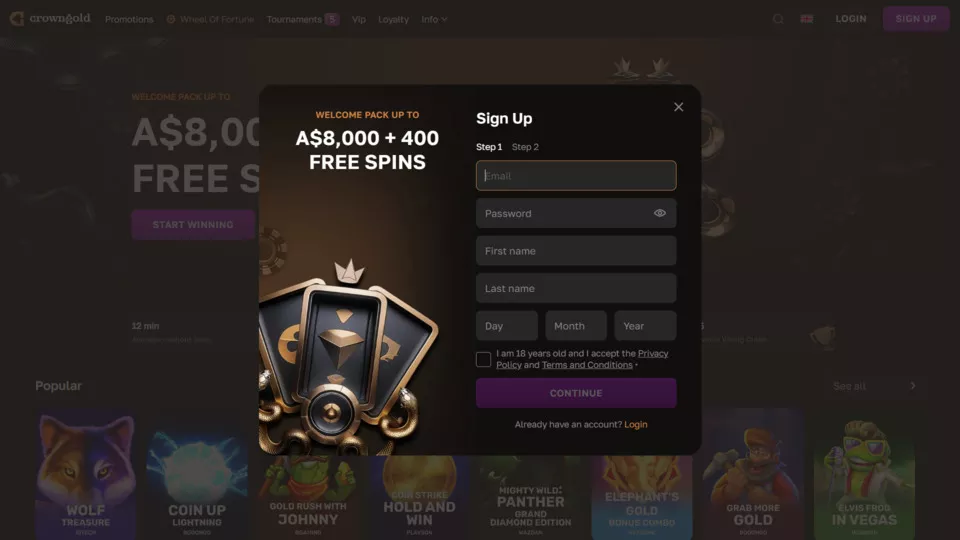 The platform has a two-step registration procedure, where you will need to enter your details like name, residency, email, and real phone number. After you confirm your email, you can start playing.