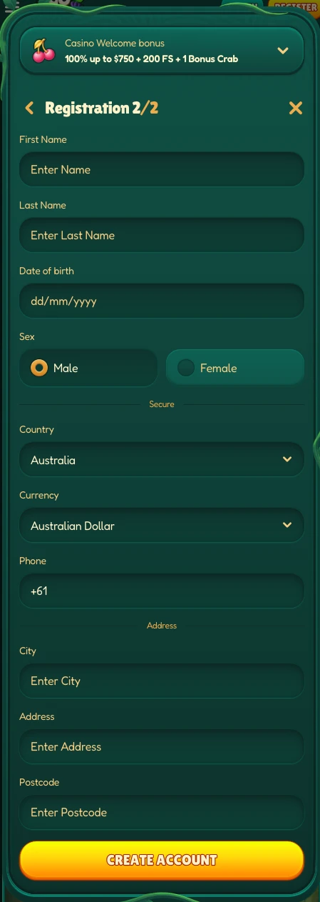 Provide your city, street address and postcode. These details will help speed up withdrawals later.