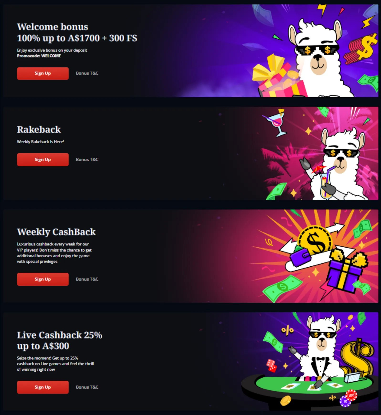 Lamabet adopts an aggressive bonus strategy to attract Australian players in a crowded market. Their promotional structure combines upfront value with ongoing incentives to encourage player retention.