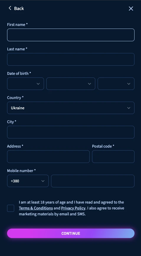 Account creation works only for players who meet the age and residency requirements and who are not located in restricted jurisdictions. Because email is used as the permanent account identifier, changing it later is not possible through profile settings and requires manual support verification.